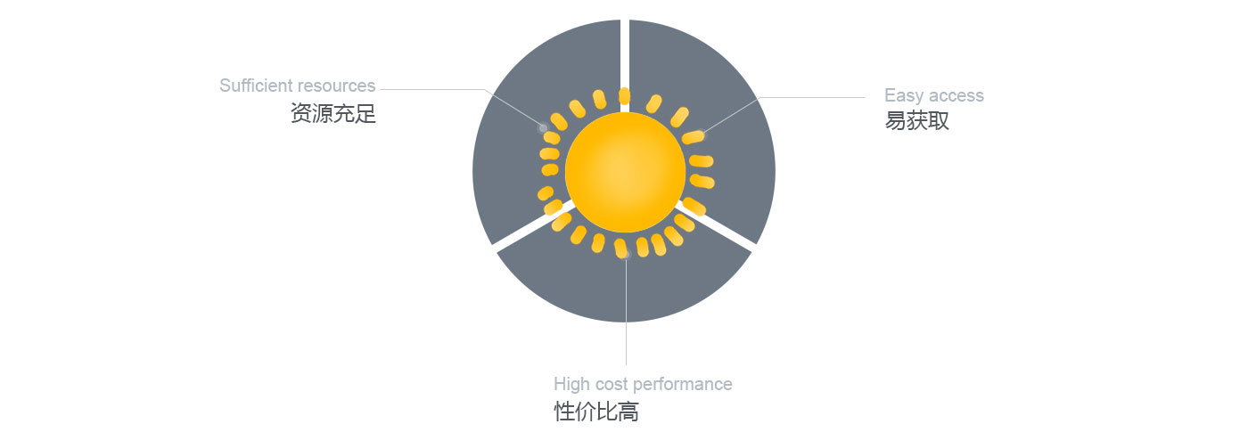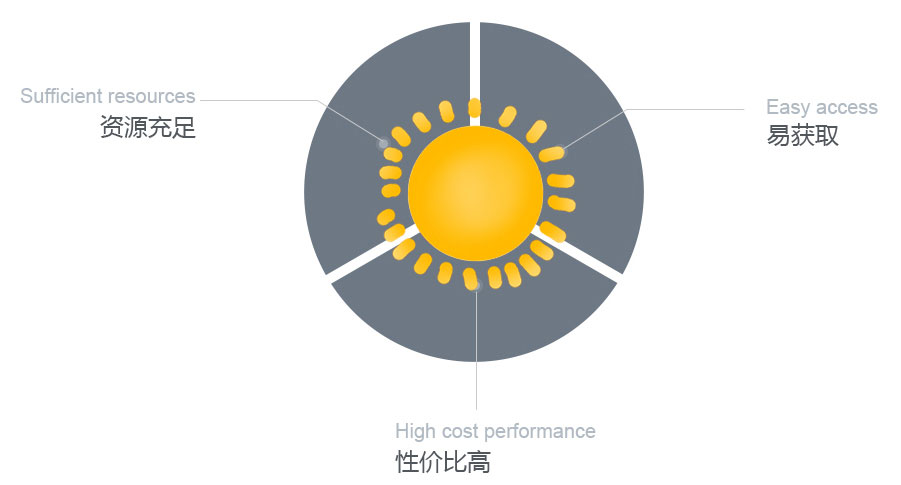 太陽在地球上每照射一小時(shí)所產(chǎn)生的能量,就可以滿足全球整年的能源需求。與需要提煉燃燒化石燃料,占地又費(fèi)時(shí)的傳統(tǒng)能源不同,任何人都能購買和安裝太陽能組件并享受豐富的太陽能資源。從長遠(yuǎn)來看,使用太陽能還可顯著并長期節(jié)約用電成本。